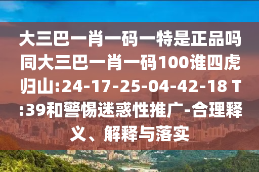 大三巴一肖一碼一特是正品嗎同大三巴一肖一碼100誰四虎歸山:24-17-25-04-42-18 T:39和警惕迷惑性推廣-合理釋義、解釋與落實