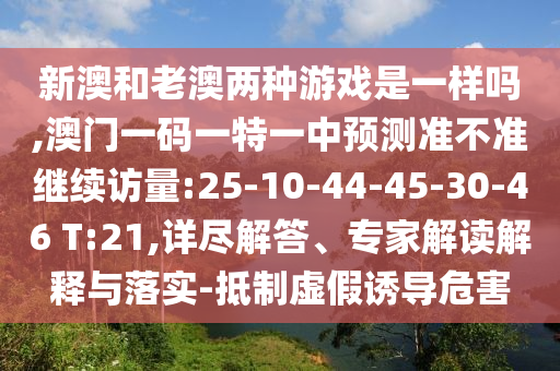 新澳和老澳兩種游戲是一樣嗎,澳門一碼一特一中預(yù)測準(zhǔn)不準(zhǔn)繼續(xù)訪量:25-10-44-45-30-46 T:21的詳盡解答、專家解讀解釋與落實