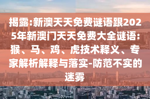 揭露:新澳天天免費謎語跟2025年新澳門天天免費大全謎語:猴、馬、雞、虎技術(shù)釋義、專家解析解釋與落實-防范不實的迷霧