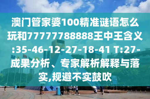 澳門管家婆100精準(zhǔn)謎語怎么玩和77777788888王中王含義:35-46-12-27-18-41 T:27-成果分析、專家解析解釋與落實(shí),規(guī)避不實(shí)鼓吹