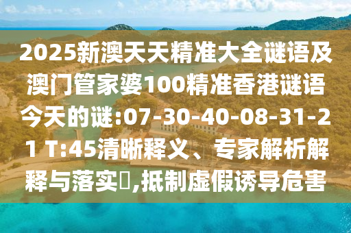 2025新澳天天精準(zhǔn)大全謎語及澳門管家婆100精準(zhǔn)香港謎語今天的謎:07-30-40-08-31-21 T:45清晰釋義、專家解析解釋與落實(shí)?,抵制虛假誘導(dǎo)危害