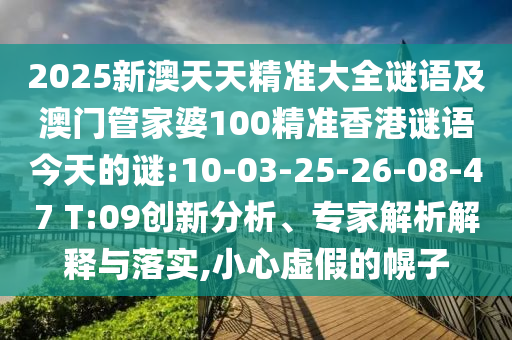 2025新澳天天精準(zhǔn)大全謎語及澳門管家婆100精準(zhǔn)香港謎語今天的謎:10-03-25-26-08-47 T:09創(chuàng)新分析、專家解析解釋與落實(shí),小心虛假的幌子