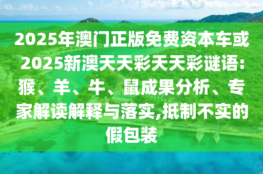 2025年澳門正版免費資本車或2025新澳天天彩天天彩謎語:猴、羊、牛、鼠成果分析、專家解讀解釋與落實,抵制不實的假包裝