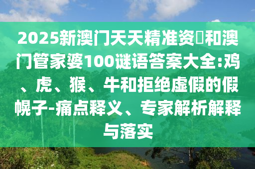 2025新澳門天天精準(zhǔn)資枓和澳門管家婆100謎語答案大全:雞、虎、猴、牛和拒絕虛假的假幌子-痛點(diǎn)釋義、專家解析解釋與落實(shí)