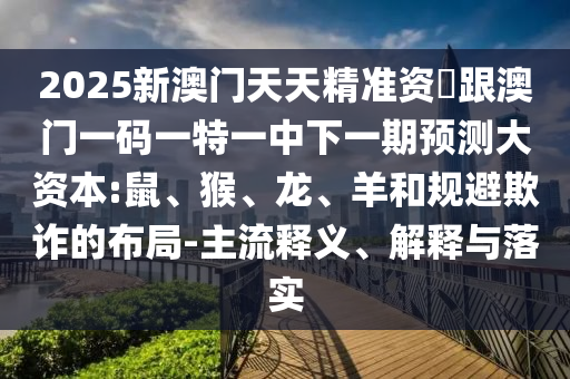 2025新澳門天天精準(zhǔn)資枓跟澳門一碼一特一中下一期預(yù)測大資本:鼠、猴、龍、羊和規(guī)避欺詐的布局-主流釋義、解釋與落實
