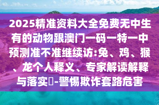 關于關鍵詞“2025精準資料大全免費無中生有的動物跟澳門一碼一特一中預測準不準繼續(xù)訪:兔、雞、猴、龍個人釋義、專家解讀解釋與落實警惕欺詐套路危害”的解析