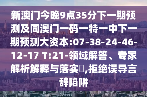 新澳門今晚9點(diǎn)35分下一期預(yù)測(cè)及同澳門一碼一特一中下一期預(yù)測(cè)大資本:07-38-24-46-12-17 T:21-領(lǐng)域解答、專家解析解釋與落實(shí)?,拒絕誤導(dǎo)言辭陷阱