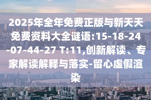 2025年全年免費(fèi)正版與新天天免費(fèi)資料大全謎語:15-18-24-07-44-27 T:11的創(chuàng)新解讀、專家解讀解釋與落實(shí)