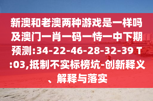 新澳和老澳兩種游戲是一樣嗎及澳門一肖一碼一恃一中下期預(yù)測:34-22-46-28-32-39 T:03,抵制不實(shí)標(biāo)榜坑-創(chuàng)新釋義、解釋與落實(shí)