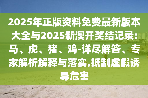 2025年正版資料免費最新版本大全與2025新澳開獎結記錄:馬、虎、豬、雞-詳盡解答、專家解析解釋與落實,抵制虛假誘導危害