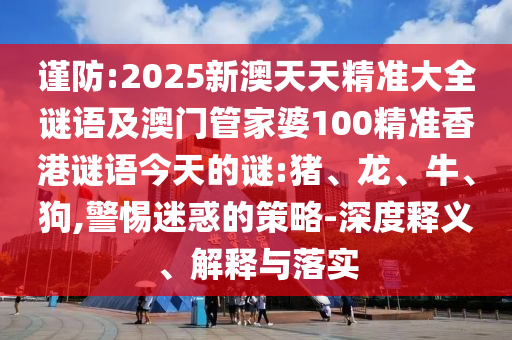 謹防:2025新澳天天精準(zhǔn)大全謎語及澳門管家婆100精準(zhǔn)香港謎語今天的謎:豬、龍、牛、狗,警惕迷惑的策略-深度釋義、解釋與落實