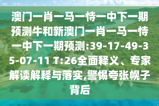 澳門(mén)一肖一馬一恃一中下一期預(yù)測(cè)牛和新澳門(mén)一肖一馬一恃一中下一期預(yù)測(cè):39-17-49-35-07-11 T:26全面釋義、專(zhuān)家解讀解釋與落實(shí),警惕夸張幌子背后
