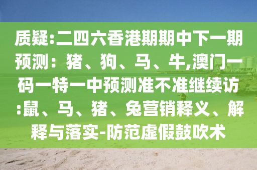 關(guān)于質(zhì)疑“二四六香港期期中下一期預(yù)測:豬、狗、馬、?!?,澳門一碼一特一中預(yù)測以及生肖營銷等相關(guān)問題的釋義、解釋與落實,并提醒公眾防范虛假宣傳