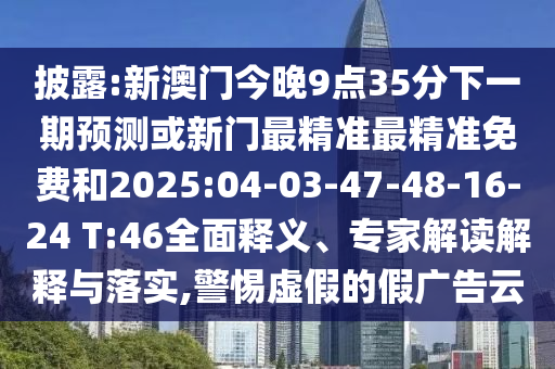 披露:新澳門今晚9點35分下一期預(yù)測或新門最精準(zhǔn)最精準(zhǔn)免費和2025:04-03-47-48-16-24 T:46全面釋義、專家解讀解釋與落實,警惕虛假的假廣告云