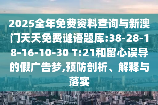 2025全年免費(fèi)資料查詢與新澳門天天免費(fèi)謎語題庫:38-28-18-16-10-30 T:21和留心誤導(dǎo)的假廣告夢(mèng),預(yù)防剖析、解釋與落實(shí)