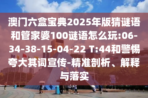 澳門六盒寶典2025年版猜謎語和管家婆100謎語怎么玩:06-34-38-15-04-22 T:44和警惕夸大其詞宣傳-精準(zhǔn)剖析、解釋與落實