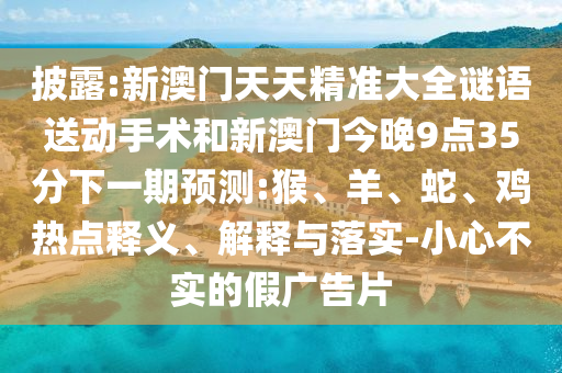 披露:新澳門天天精準(zhǔn)大全謎語送動手術(shù)和新澳門今晚9點(diǎn)35分下一期預(yù)測:猴、羊、蛇、雞熱點(diǎn)釋義、解釋與落實(shí)-小心不實(shí)的假廣告片