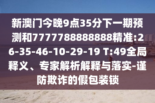 關(guān)于曝光“新澳門今晚9點35分下一期預(yù)測”和“7777788888888精準:26-35-46-10-29-19 T:49”的全局釋義、專家解析解釋與落實,以及謹防欺詐的假包裝鎖警告