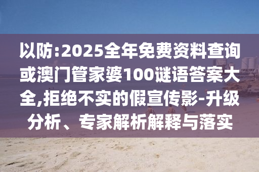 以防:2025全年免費(fèi)資料查詢或澳門管家婆100謎語答案大全,拒絕不實(shí)的假宣傳影-升級(jí)分析、專家解析解釋與落實(shí)