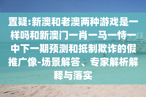 新澳和老澳兩種游戲是否一樣以及新澳門一肖一馬一恃一中下一期預(yù)測的場景解答、專家解析解釋與落實(shí),并抵制欺詐的假推廣