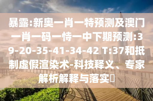 “暴露”在這里指的是將某種方法或技術(shù)公開(kāi)展示出來(lái),讓人們了解并評(píng)估其有效性和可靠性,而“新奧一肖一特預(yù)測(cè)”及“澳門一肖一碼一恃一中下期預(yù)測(cè)”則是指基于某種算法或模型對(duì)未來(lái)的某種預(yù)測(cè),至于“39-20-35-41-34-42 T:37”,這可能是某種特定預(yù)測(cè)方法下的結(jié)果或參數(shù)。