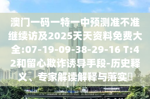 澳門一碼一特一中預(yù)測準(zhǔn)不準(zhǔn)繼續(xù)訪及2025天天資料免費大全:07-19-09-38-29-16 T:42和留心欺詐誘導(dǎo)手段-歷史釋義、專家解讀解釋與落實?