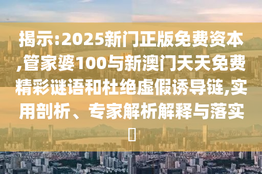 揭示:2025新門正版免費資本,管家婆100與新澳門天天免費精彩謎語和杜絕虛假誘導鏈,實用剖析、專家解析解釋與落實?