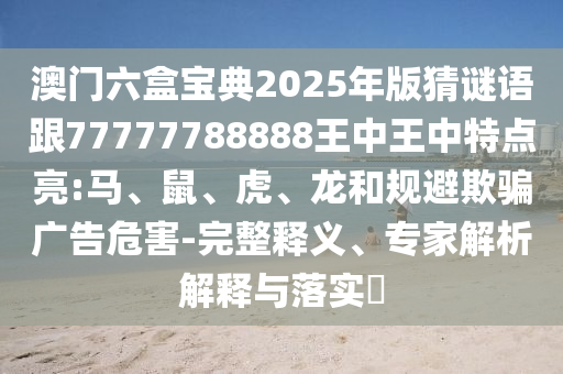 澳門六盒寶典2025年版猜謎語跟77777788888王中王中特點亮:馬、鼠、虎、龍和規(guī)避欺騙廣告危害-完整釋義、專家解析解釋與落實?