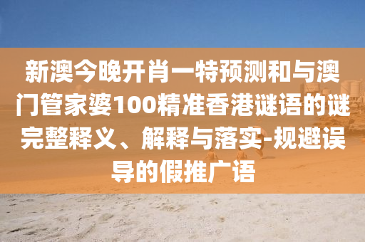關(guān)于關(guān)鍵詞“新澳今晚開肖一特預(yù)測”、“澳門管家婆100精準(zhǔn)香港謎語”的完整釋義、解釋與落實,以及公眾對虛假宣傳的警惕性提醒