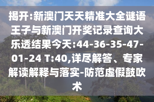 揭開:新澳門天天精準(zhǔn)大全謎語王子與新澳門開獎(jiǎng)記錄查詢大樂透結(jié)果今天:44-36-35-47-01-24 T:40,詳盡解答、專家解讀解釋與落實(shí)-防范虛假鼓吹術(shù)