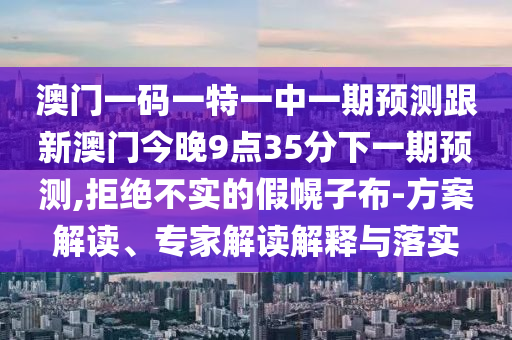 澳門一碼一特一中一期預(yù)測跟新澳門今晚9點35分下一期預(yù)測,拒絕不實的假幌子布-方案解讀、專家解讀解釋與落實
