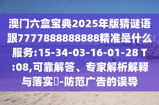 澳門六盒寶典2025年版猜謎語跟7777888888888精準是什么服務:15-34-03-16-01-28 T:08,可靠解答、專家解析解釋與落實?-防范廣告的誤導