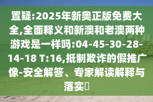 置疑:2025年新奧正版免費(fèi)大全,全面釋義和新澳和老澳兩種游戲是一樣嗎:04-45-30-28-14-18 T:16,抵制欺詐的假推廣像-安全解答、專(zhuān)家解讀解釋與落實(shí)?
