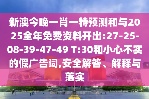 新澳今晚一肖一特預(yù)測和與2025全年免費資料開出:27-25-08-39-47-49 T:30和小心不實的假廣告詞,安全解答、解釋與落實