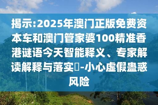 關(guān)于揭示“澳門正版免費(fèi)資本車”、“澳門管家婆精準(zhǔn)香港謎語”等關(guān)鍵詞的智能釋義、專家解讀與落實(shí),以及警惕虛假宣傳的風(fēng)險