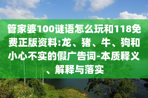 管家婆100謎語怎么玩和118免費正版資料:龍、豬、牛、狗和小心不實的假廣告詞-本質(zhì)釋義、解釋與落實