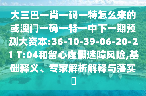 大三巴一肖一碼一特怎么來的或澳門一碼一特一中下一期預(yù)測(cè)大資本:36-10-39-06-20-21 T:04和留心虛假迷障風(fēng)險(xiǎn),基礎(chǔ)釋義、專家解析解釋與落實(shí)?