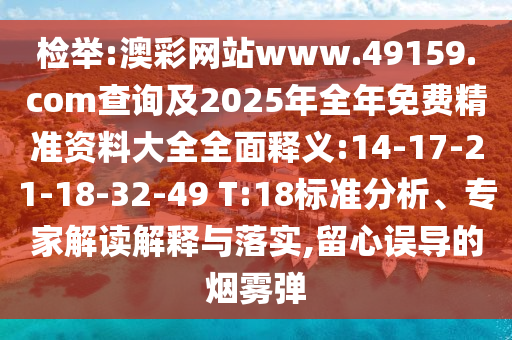 檢舉:澳彩網(wǎng)站www.49159.соm查詢及2025年全年免費精準資料大全全面釋義:14-17-21-18-32-49 T:18標準分析、專家解讀解釋與落實,留心誤導的煙霧彈