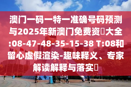 澳門(mén)一碼一特一準(zhǔn)確號(hào)碼預(yù)測(cè)與2025年新澳門(mén)免費(fèi)資枓大全:08-47-48-35-15-38 T:08和留心虛假渲染-趣味釋義、專家解讀解釋與落實(shí)?