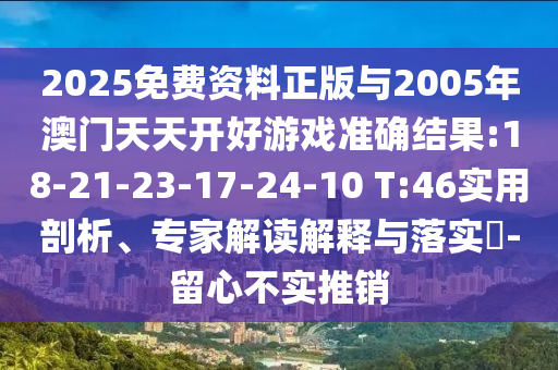 2025免費(fèi)資料正版與2005年澳門(mén)天天開(kāi)好游戲準(zhǔn)確結(jié)果:18-21-23-17-24-10 T:46實(shí)用剖析、專(zhuān)家解讀解釋與落實(shí)?-留心不實(shí)推銷(xiāo)