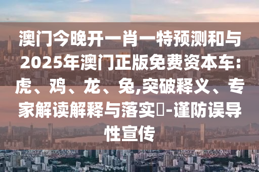 關(guān)于澳門今晚開一肖一特預(yù)測(cè)和與2025年澳門正版免費(fèi)資本車:虎、雞、龍、兔的謹(jǐn)防誤導(dǎo)性宣傳的釋義、專家解讀與落實(shí)