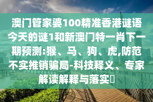 澳門(mén)管家婆100精準(zhǔn)香港謎語(yǔ)今天的謎1和新澳門(mén)特一肖下一期預(yù)測(cè):猴、馬、狗、虎,防范不實(shí)推銷騙局-科技釋義、專家解讀解釋與落實(shí)?