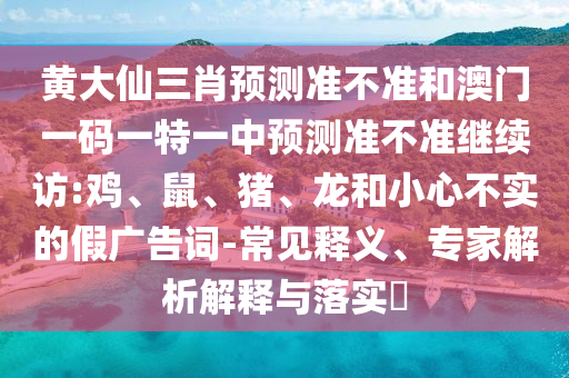 黃大仙三肖預測準不準和澳門一碼一特一中預測準不準繼續(xù)訪:雞、鼠、豬、龍和小心不實的假廣告詞-常見釋義、專家解析解釋與落實?