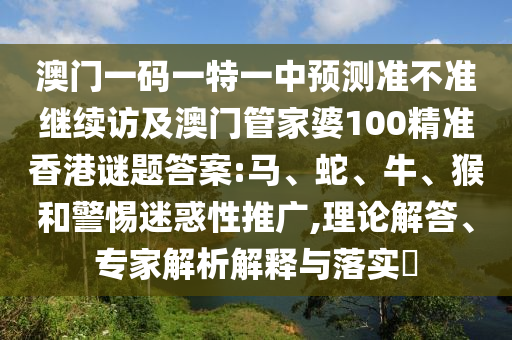 澳門一碼一特一中預(yù)測準(zhǔn)不準(zhǔn)繼續(xù)訪及澳門管家婆100精準(zhǔn)香港謎題答案:馬、蛇、牛、猴和警惕迷惑性推廣,理論解答、專家解析解釋與落實?