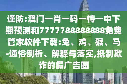 謹(jǐn)防:澳門(mén)一肖一碼一恃一中下期預(yù)測(cè)和7777788888888免費(fèi)管家軟件下載:兔、雞、猴、馬-通俗剖析、解釋與落實(shí),抵制欺詐的假?gòu)V告圈