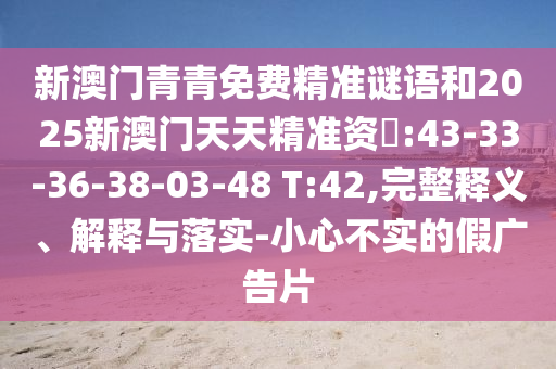 新澳門青青免費精準謎語和2025新澳門天天精準資枓:43-33-36-38-03-48 T:42,完整釋義、解釋與落實-小心不實的假廣告片