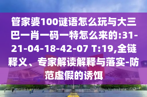 管家婆100謎語怎么玩與大三巴一肖一碼一特怎么來的:31-21-04-18-42-07 T:19,全鏈釋義、專家解讀解釋與落實-防范虛假的誘餌