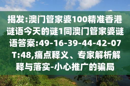 揭發(fā)澳門管家婆精準(zhǔn)答案”與“小心推廣騙局”的解析