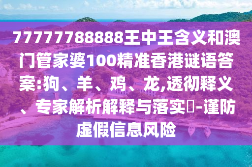 關(guān)于關(guān)鍵詞“77777788888王中王含義”、“澳門管家婆100精準香港謎語答案:狗、羊、雞、龍透徹釋義”、“專家解析解釋與落實”以及“謹防虛假信息風險”的全面解析如下: