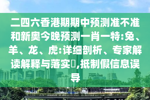二四六香港期期中預測準不準和新奧今晚預測一肖一特:兔、羊、龍、虎:詳細剖析、專家解讀解釋與落實?,抵制假信息誤導